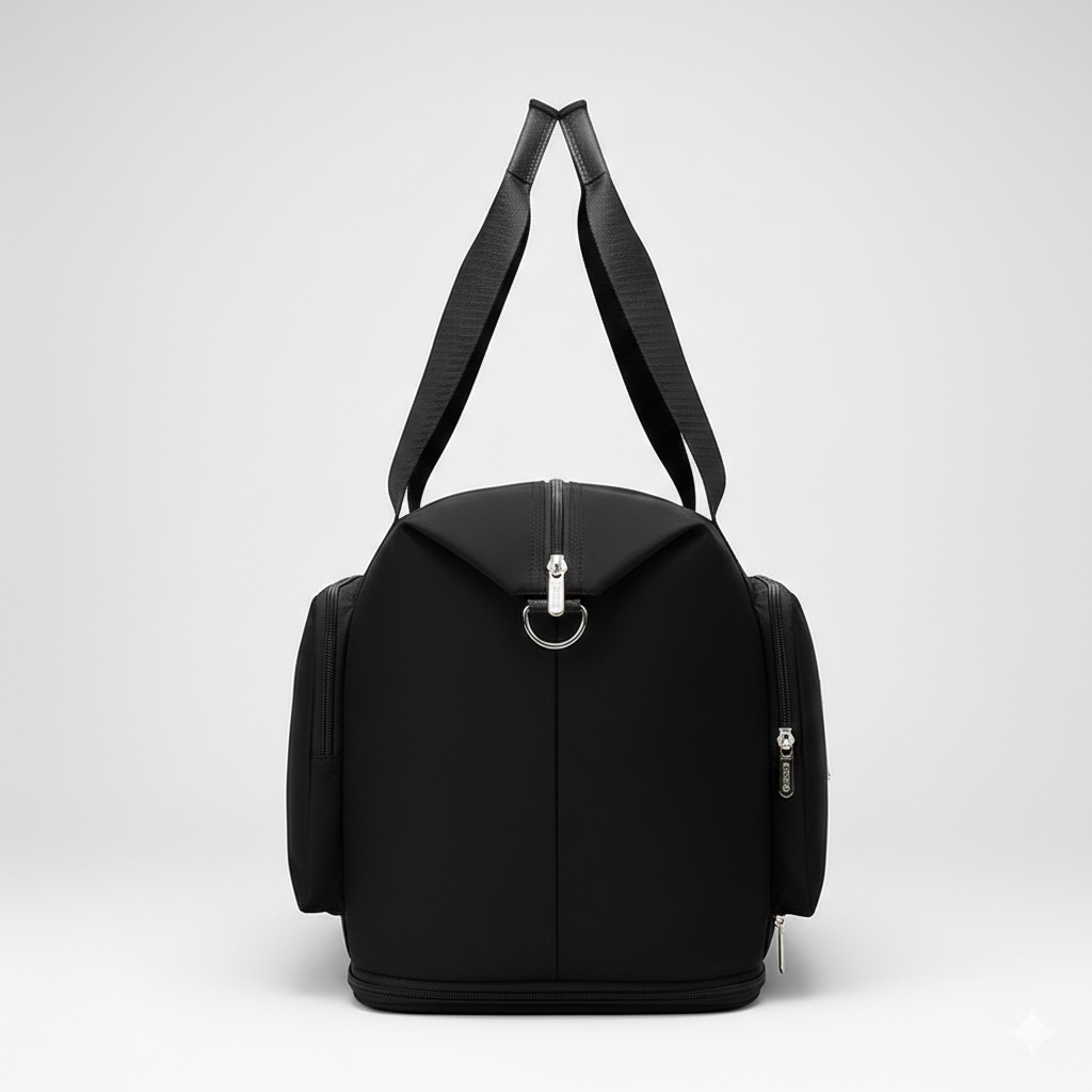 Leva tudo o que precisas, sem perder elegância. O compartimento inferior mantém os ténis separados da roupa, enquanto o espaço principal acomoda toalhas, garrafas, acessórios e até o portátil — ideal para quem vai do trabalho direto para o treino. Feita em material resistente e impermeável, é leve, prática e fácil de limpar. A mala que acompanha o teu ritmo, sem te atrasar.